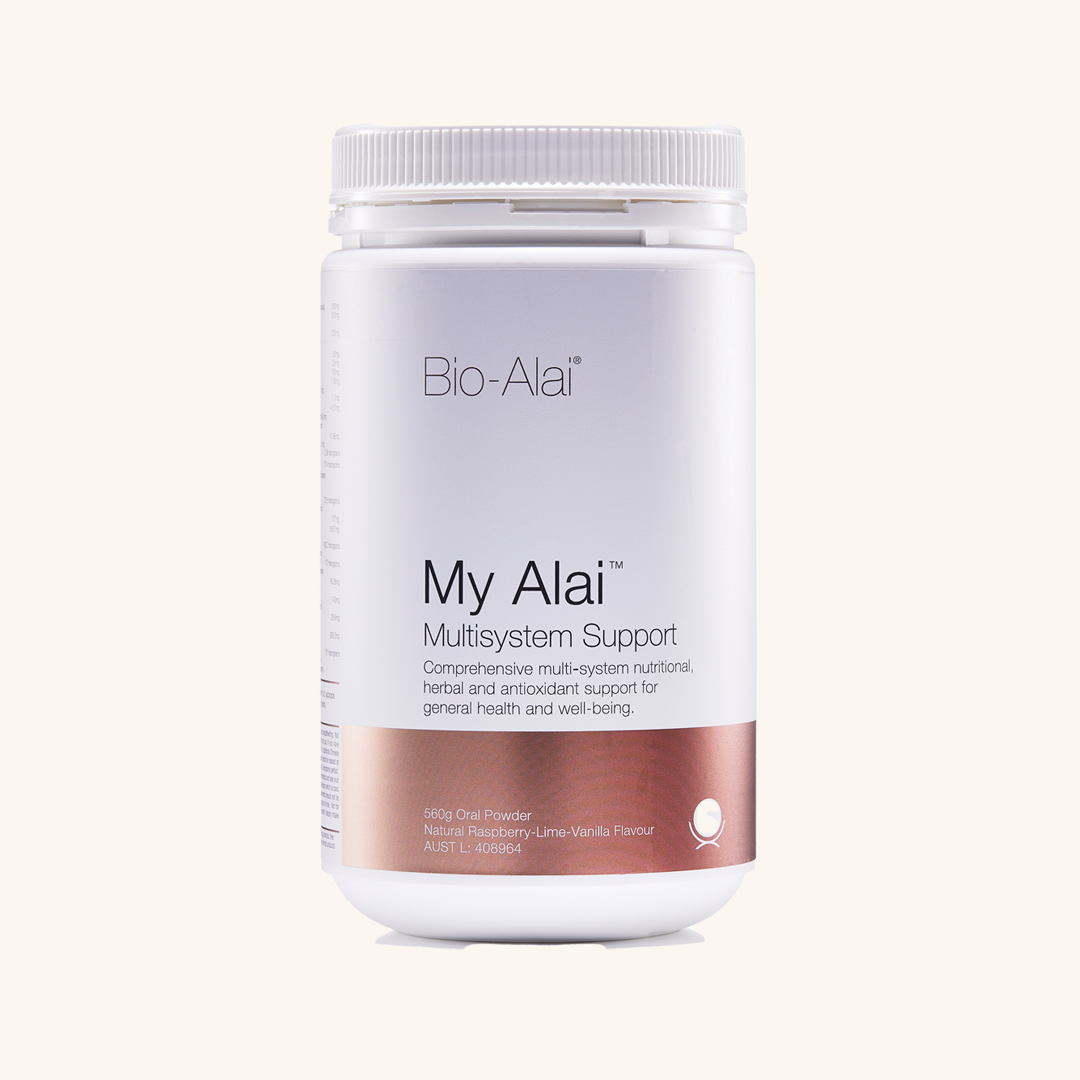 My Alai™ Multisystem Support is a nutrient-dense formulation with active ingredients that address the key physiological processes disrupted by modern life. It is classified under the category of a TGA-listed complementary medicine.